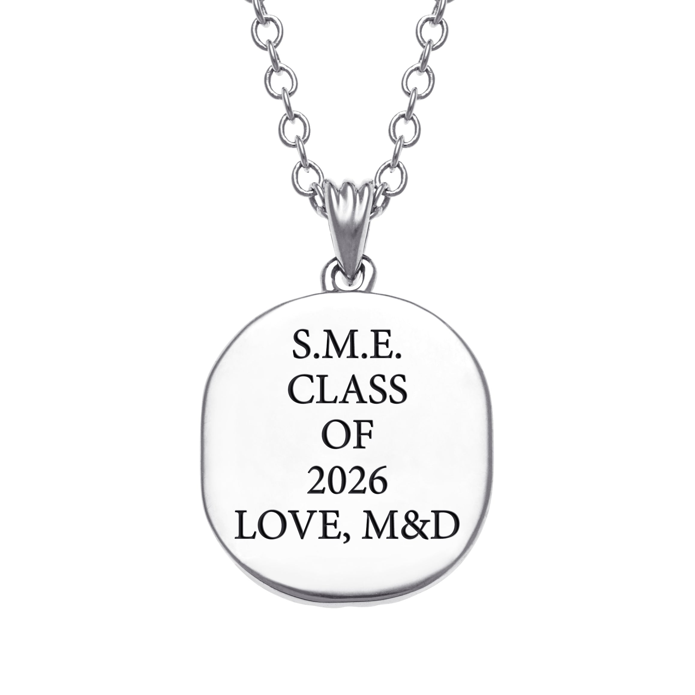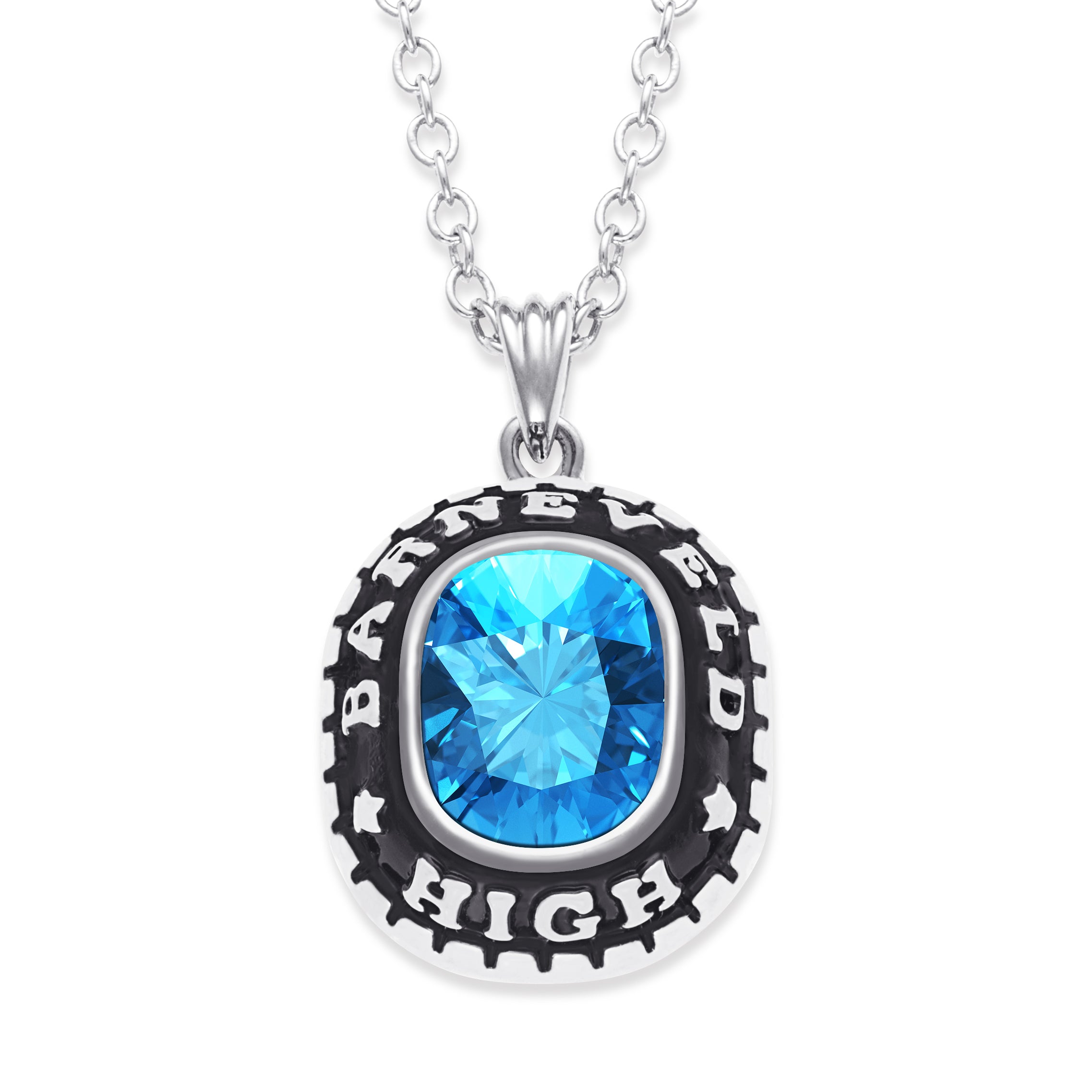 Give your grad a personalized pendant that shines with timeless style. Featuring a sparkling birthstone and personalized school details, this Rhodium-Plated piece will make a cherished addition to their jewelry collection. Express how proud you are of their accomplishments with this beautifully crafted gift.