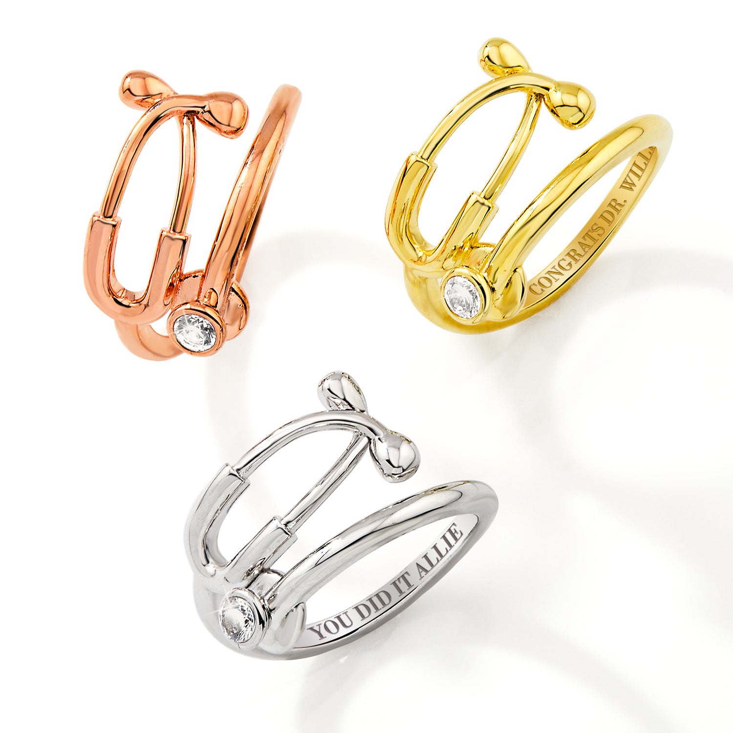 Honor the heart of healthcare with this elegant Gold Plated Stethoscope Wrap Ring, thoughtfully designed to celebrate the dedication of medical professionals. Shaped like a stethoscope wrapping around the finger, this meaningful ring features a sparkling 3.0mm crystal birthstone set in the bell (diaphragm)—adding personal significance and subtle brilliance.