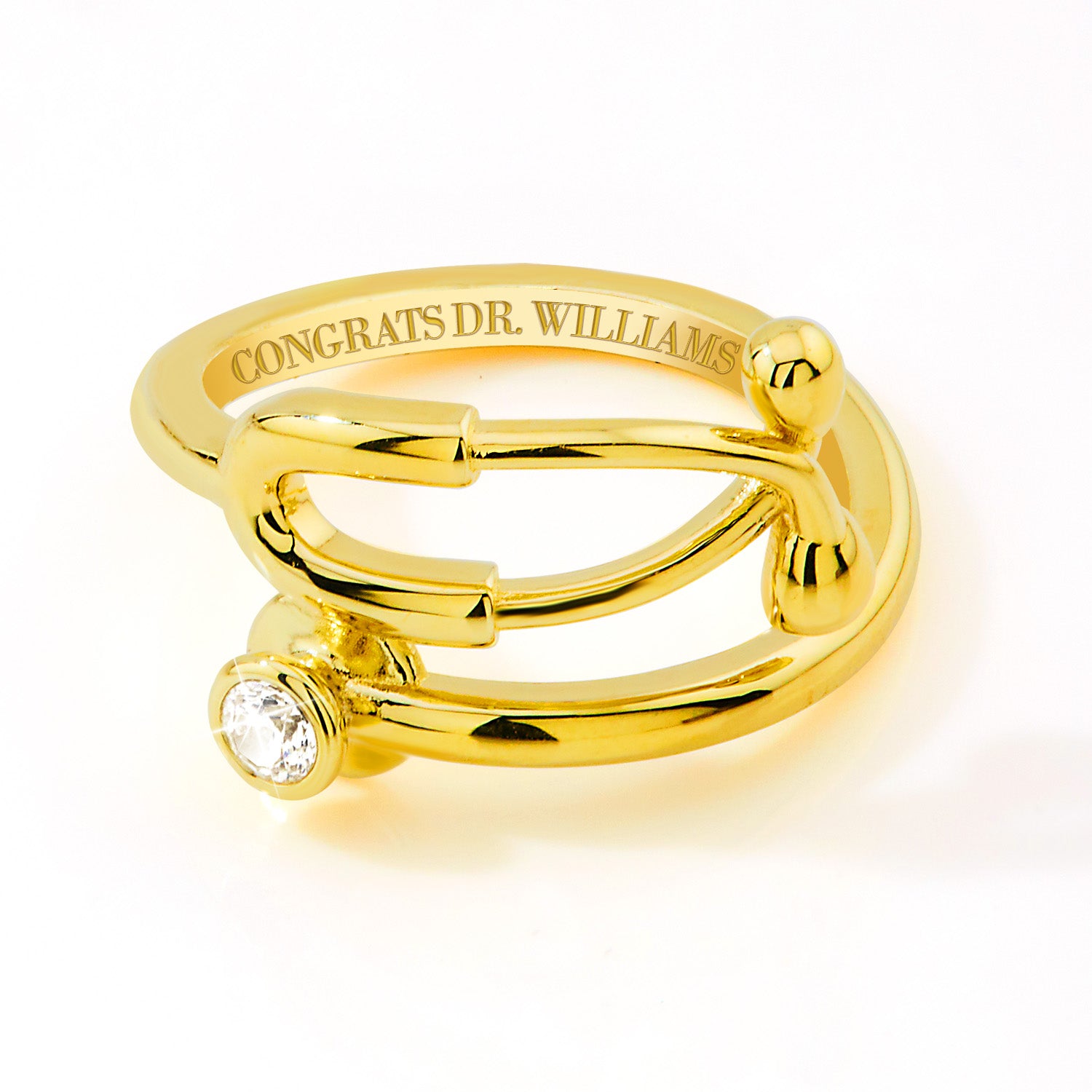 Gold Plated Personalized Birthstone Stethoscope Wrap Ring