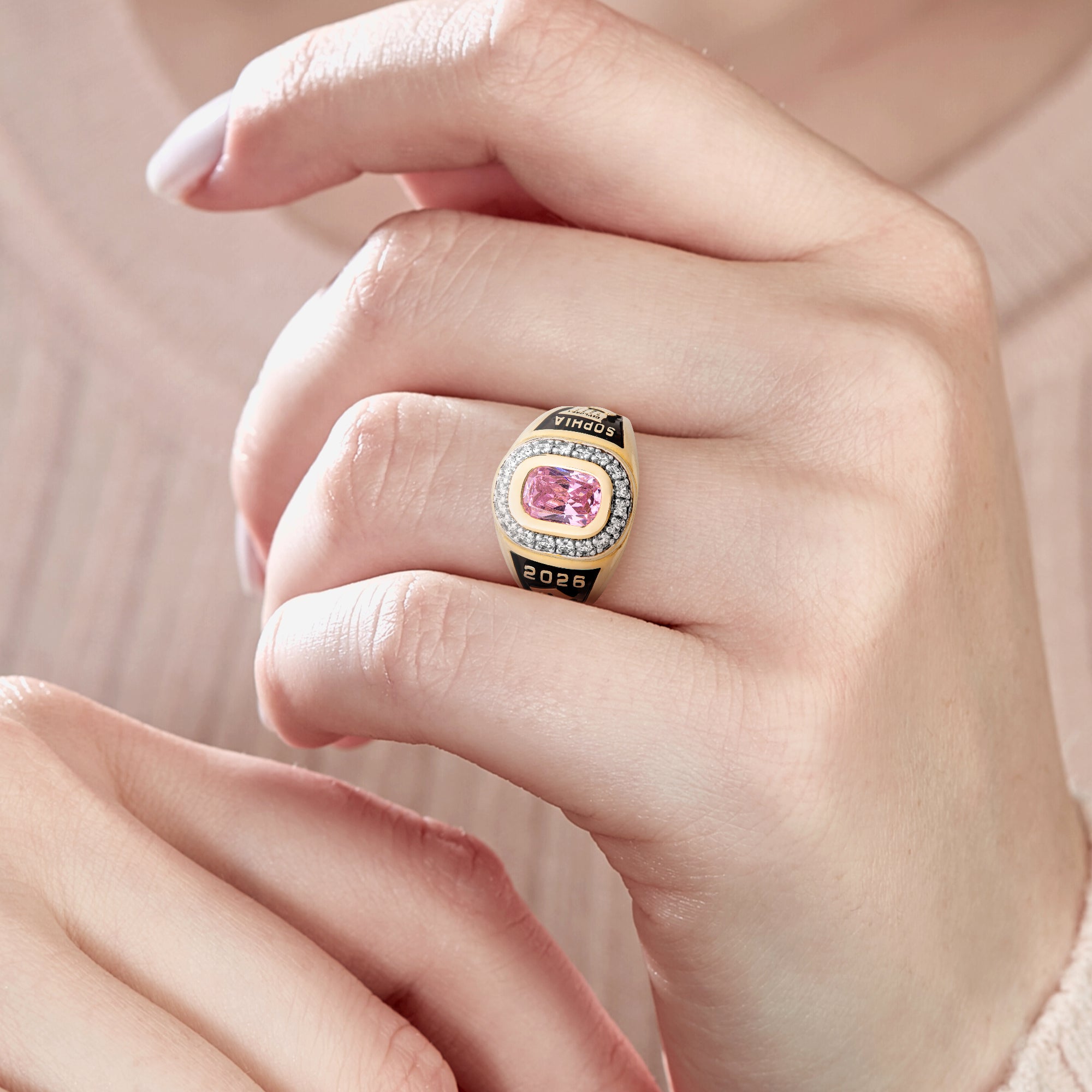 Ladies' 14K Gold Plated CZ Encrusted Traditional Personalized Class Ring