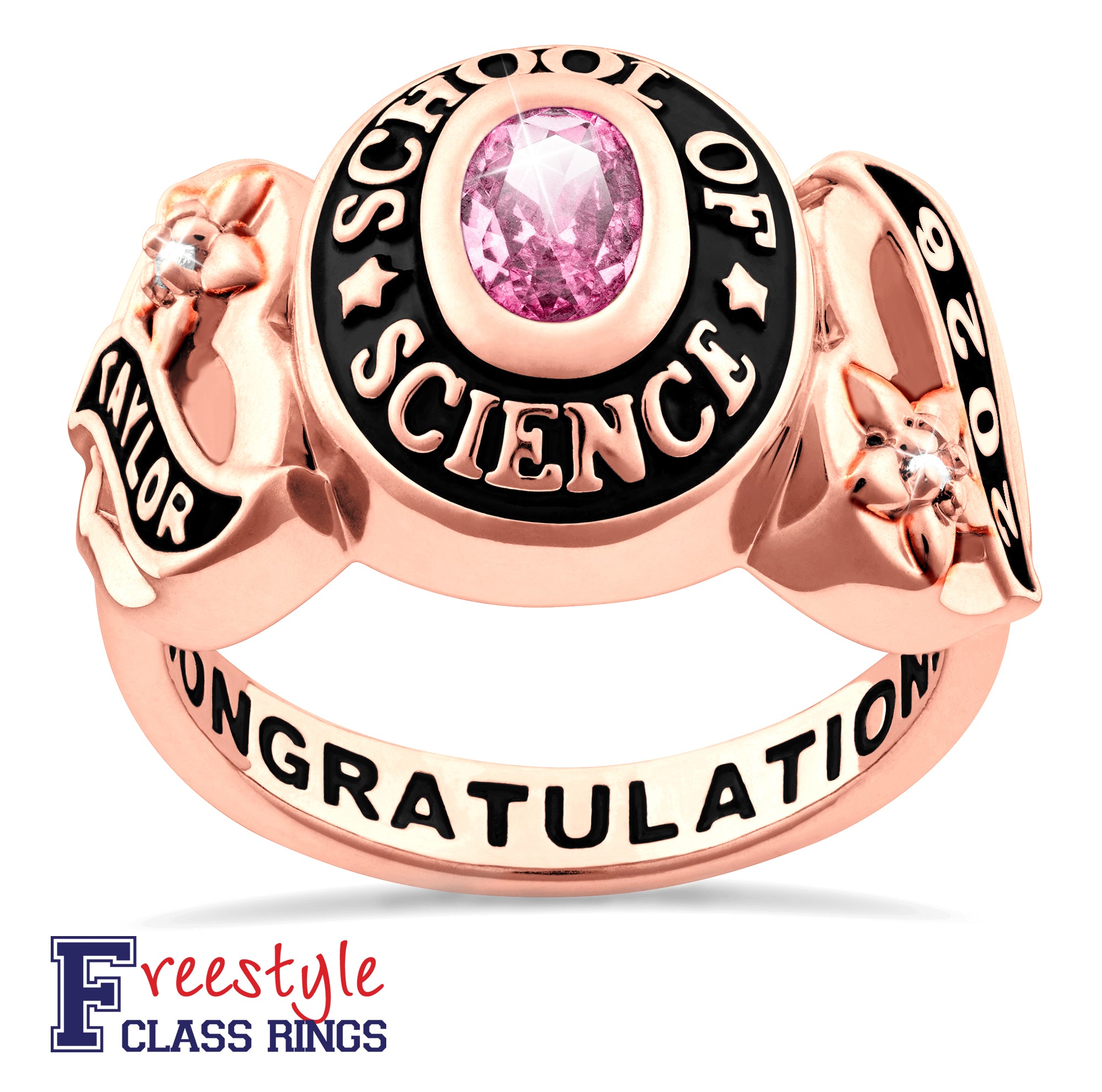 Ladies Rose Gold CELEBRIUM Sweetheart Class Ring with Diamond Accents