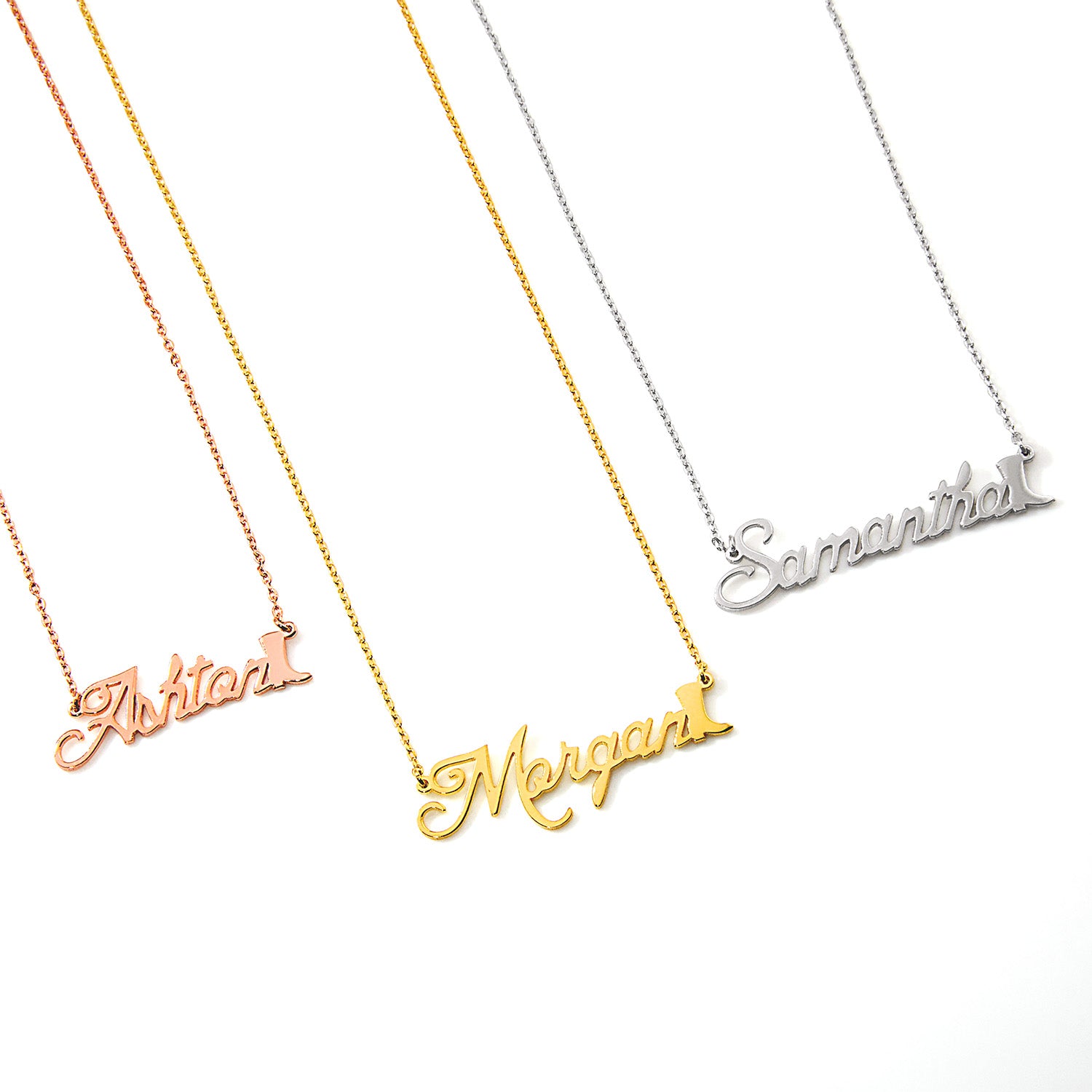 Step into western-inspired style with this personalized script name necklace, accented by a charming cowboy boot detail. Designed in a flowing script font, the name plaque feels soft and feminine, while the tiny cowboy boot at the end of the name adds the perfect touch of country flair.