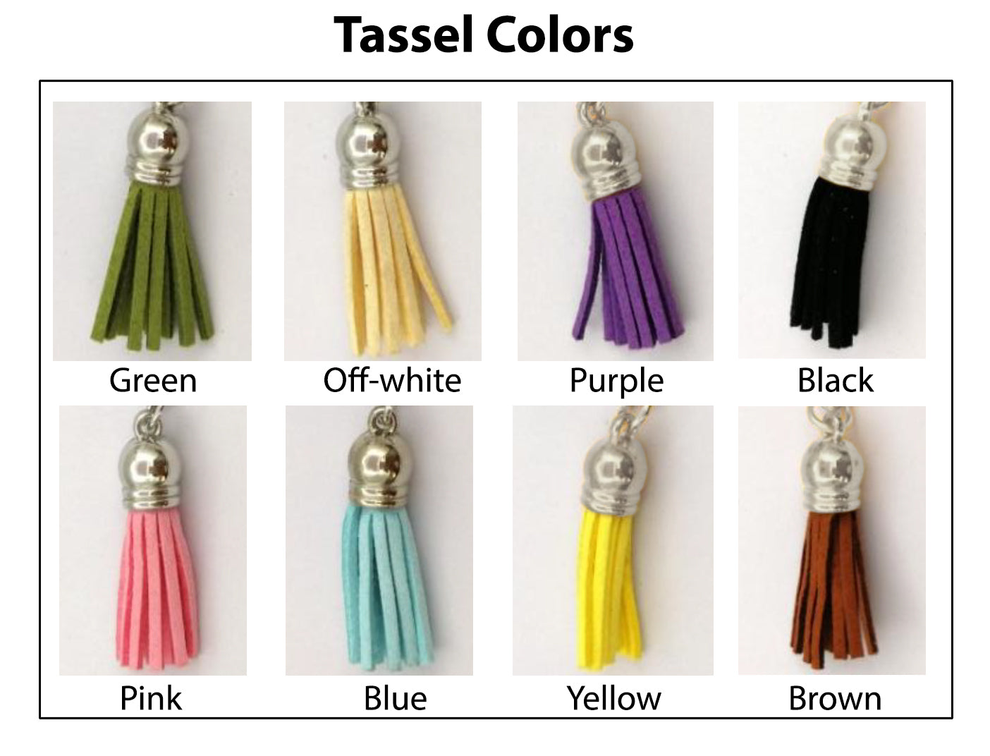 - Custom Tassel Color - Choose from 8 tassel colors to match your look; Tassel Charm: 10.2mm wide (0.40") x 16.2mm tall (0.64")