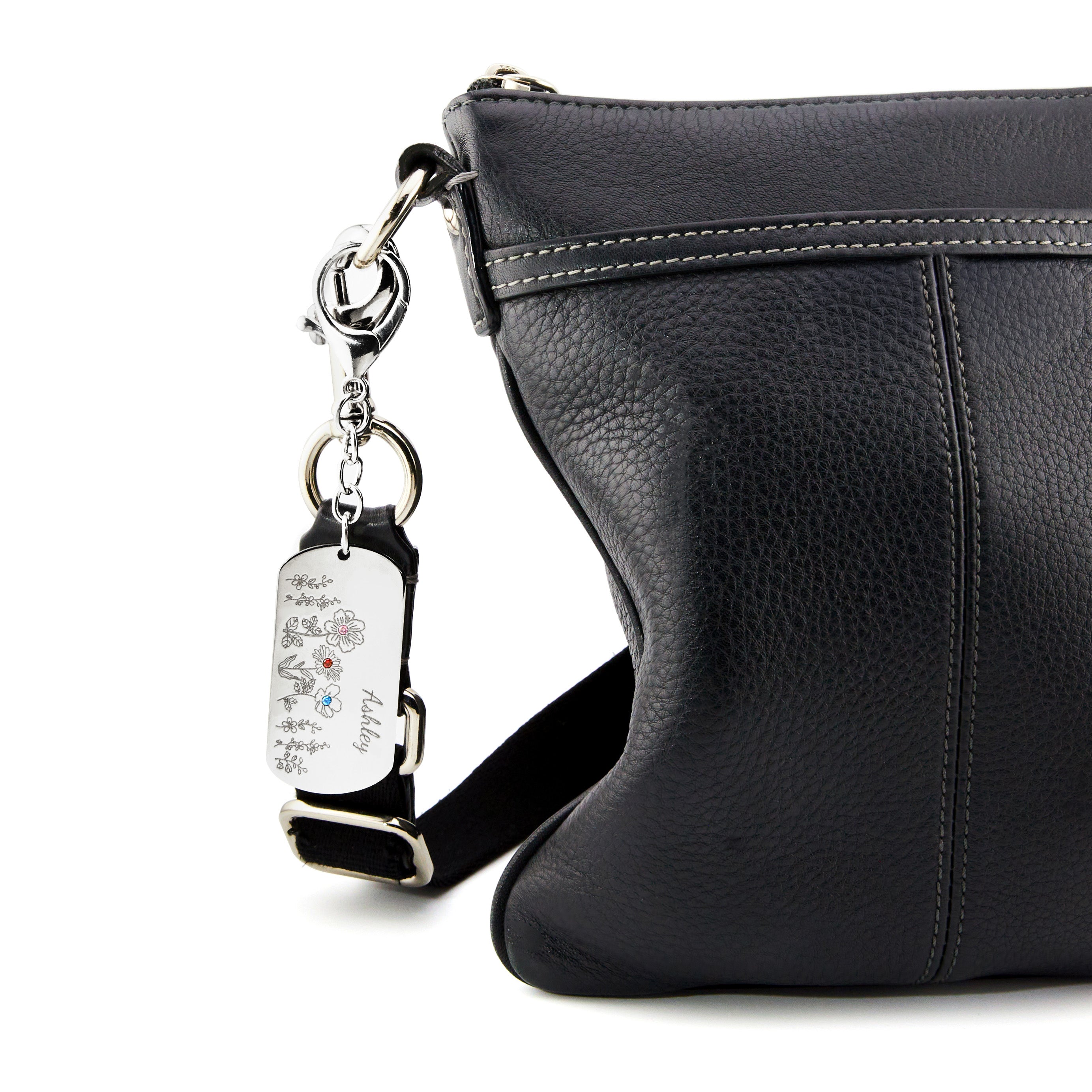 Celebrate the people you love - or treat yourself to something beautifully personal - with our Stainless Steel Personalized Name and Birthstone Flowers Keychain. This polished, rounded-edge rectangle charm measures 27.8mm (1.10") wide and 55mm (2.17") tall, offering the perfect canvas for your custom engraving. Personalize it with up to 10 letters and up to 3 etched flowers, each featuring a sparkling birthstone center. Any flower without a selected birthstone will be set with a clear stone for a clean, elegant finish.