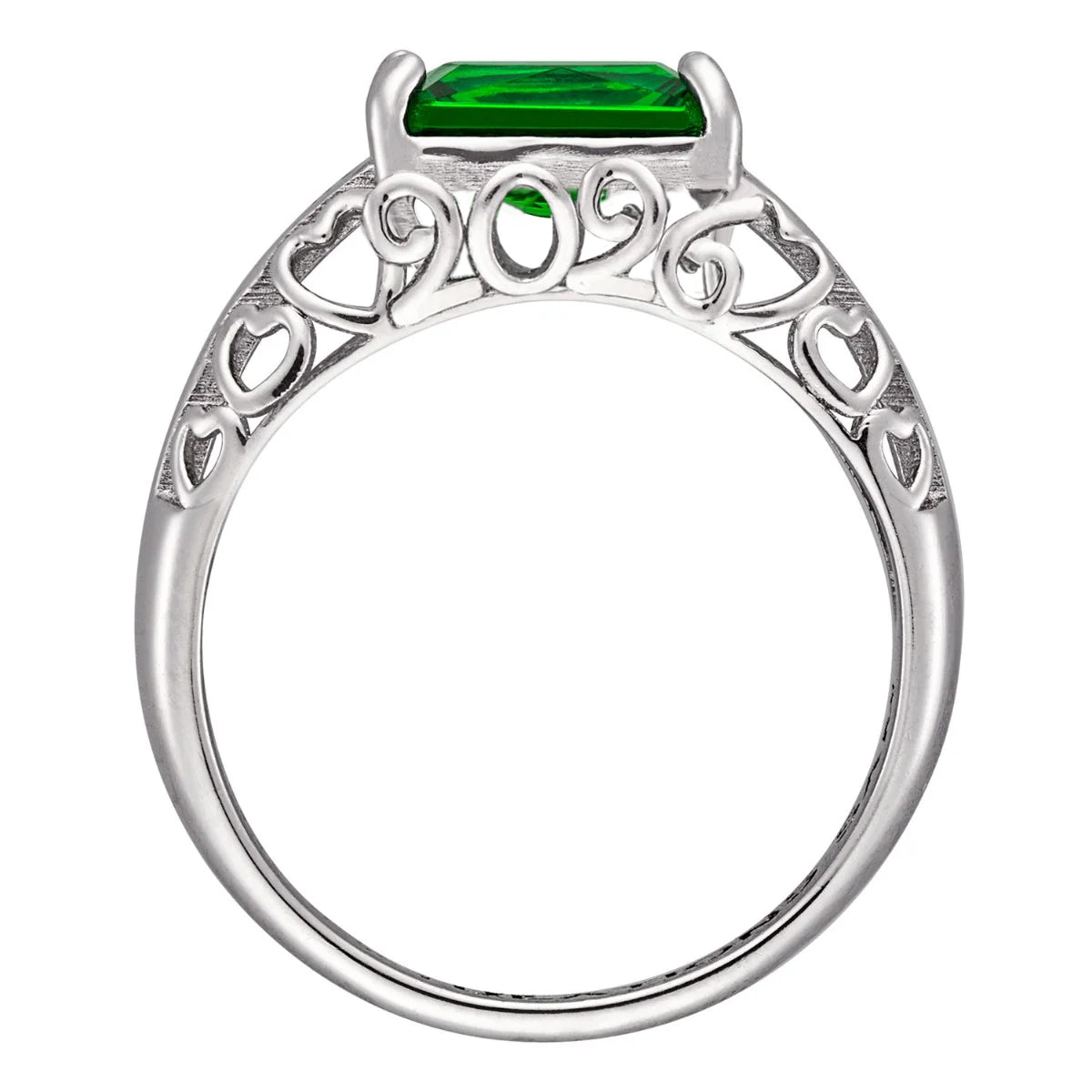 Sterling Silver Emerald-cut Birthstone Class Ring With Filigree Hidden Year
