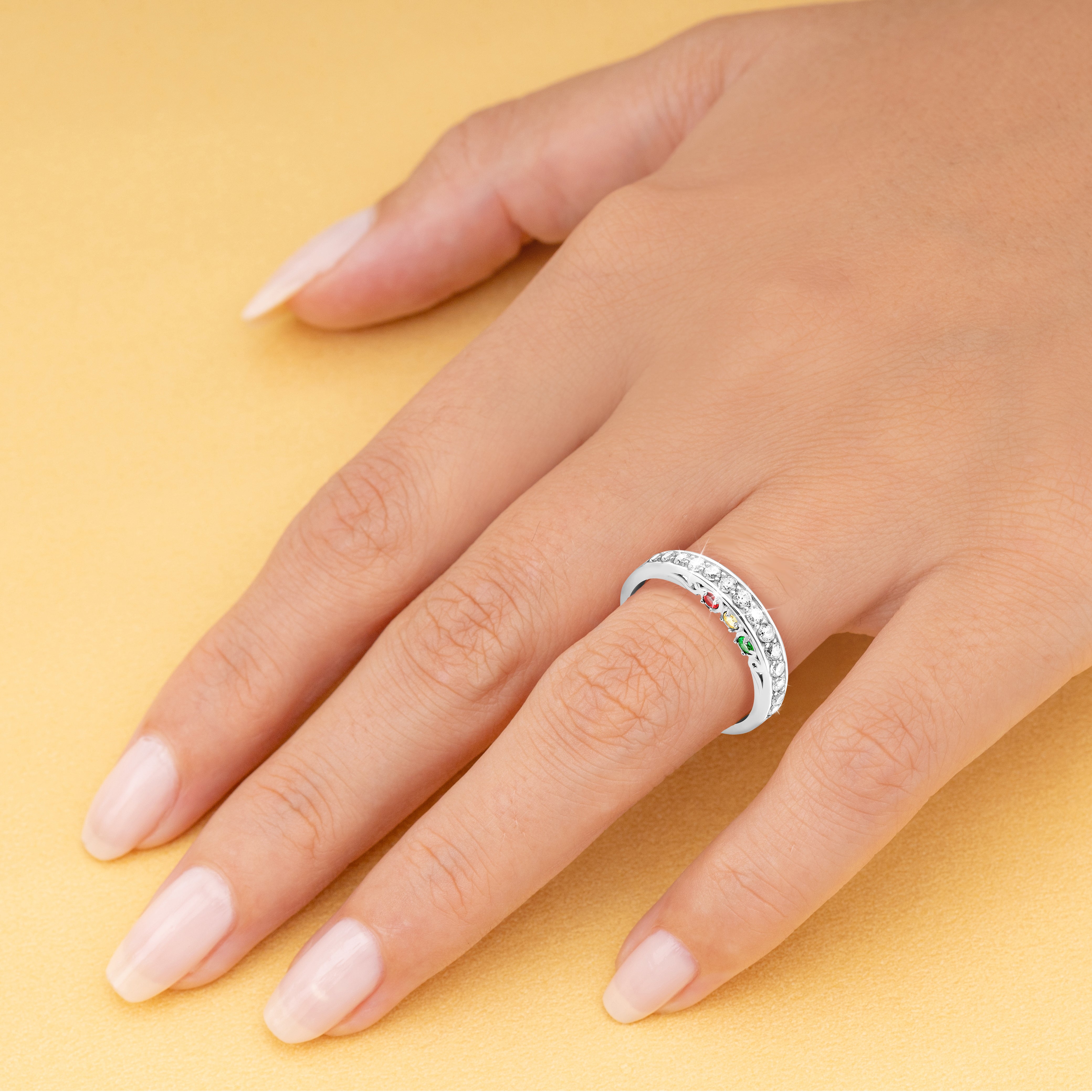 Sterling Silver Family Hidden Birthstone Ring with White Topaz